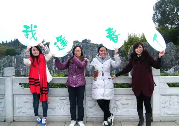 2014年12月4日清晨,逢春第一批優(yōu)秀員工在逢春制藥企業(yè)負(fù)責(zé)人何德中的帶領(lǐng)下前往令人向往的昆明、大理、麗江游覽。大家清晨從公司乘坐大巴出發(fā),到達(dá)成都后坐飛機(jī)飛往昆明,大家都很興奮,因?yàn)椴簧偃耸堑谝淮纬俗w機(jī),經(jīng)過一小時(shí)多的飛行飛機(jī)順利抵達(dá)昆明機(jī)場。